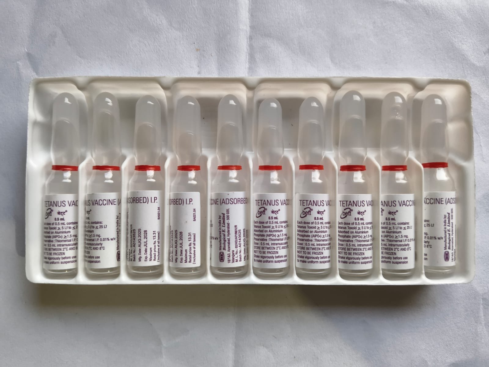BETT (tetanus vaccine ) quantity