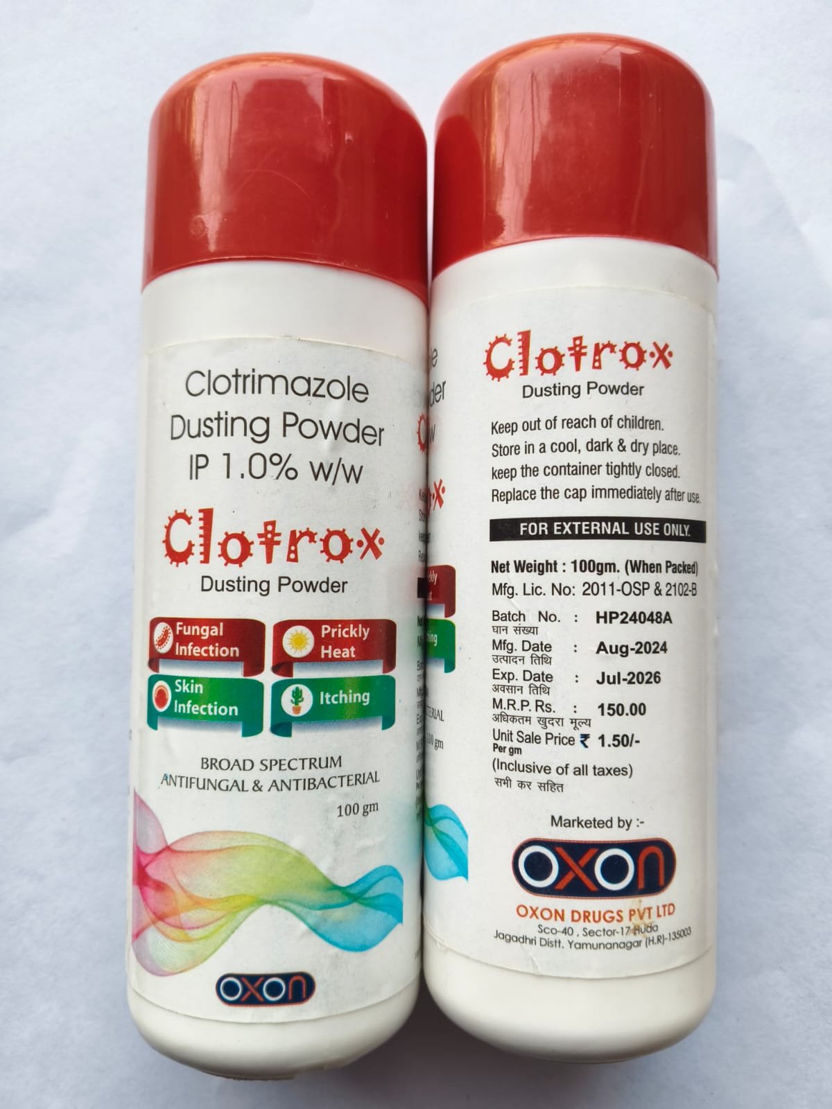 Clotrimazole Dusting Powder is a topical antifungal formulation designed to treat and prevent fungal skin infections. It works by stopping the growth of fungus responsible for conditions such as ringworm, athlete’s foot, jock itch, and sweat-related rashes commonly seen in skin folds. The powder keeps the affected area dry, reduces itching, irritation, redness, and prevents recurrence of infection. It is commonly used under the arms, neck, feet, groin area, waistline, and other sweat-prone regions.